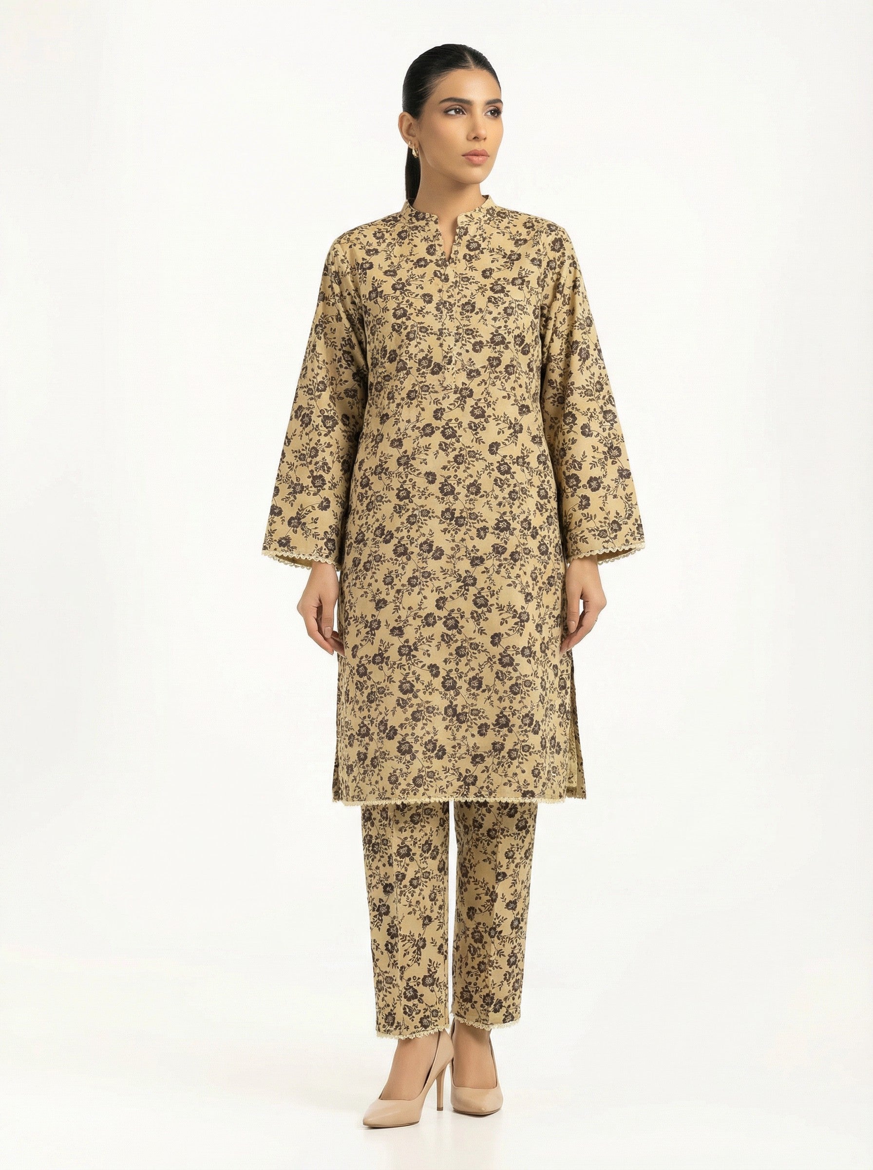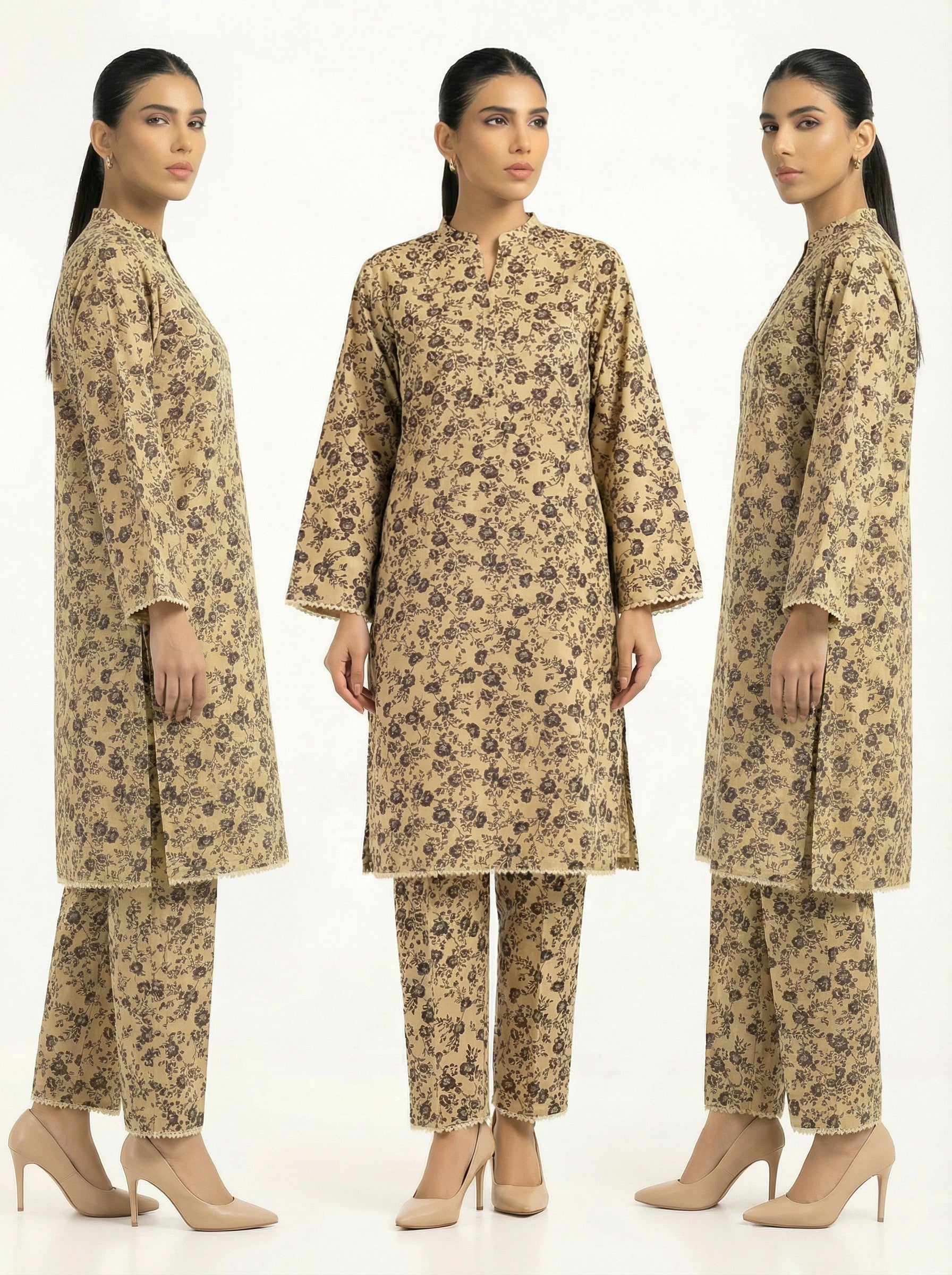 Upgrade your wardrobe with this elegant beige floral 2 piece stitched suit. Featuring a printed shirt with matching trousers, this ready-to-wear set offers a comfortable fit and a timeless design, perfect for daily wear, office looks, or casual outings.