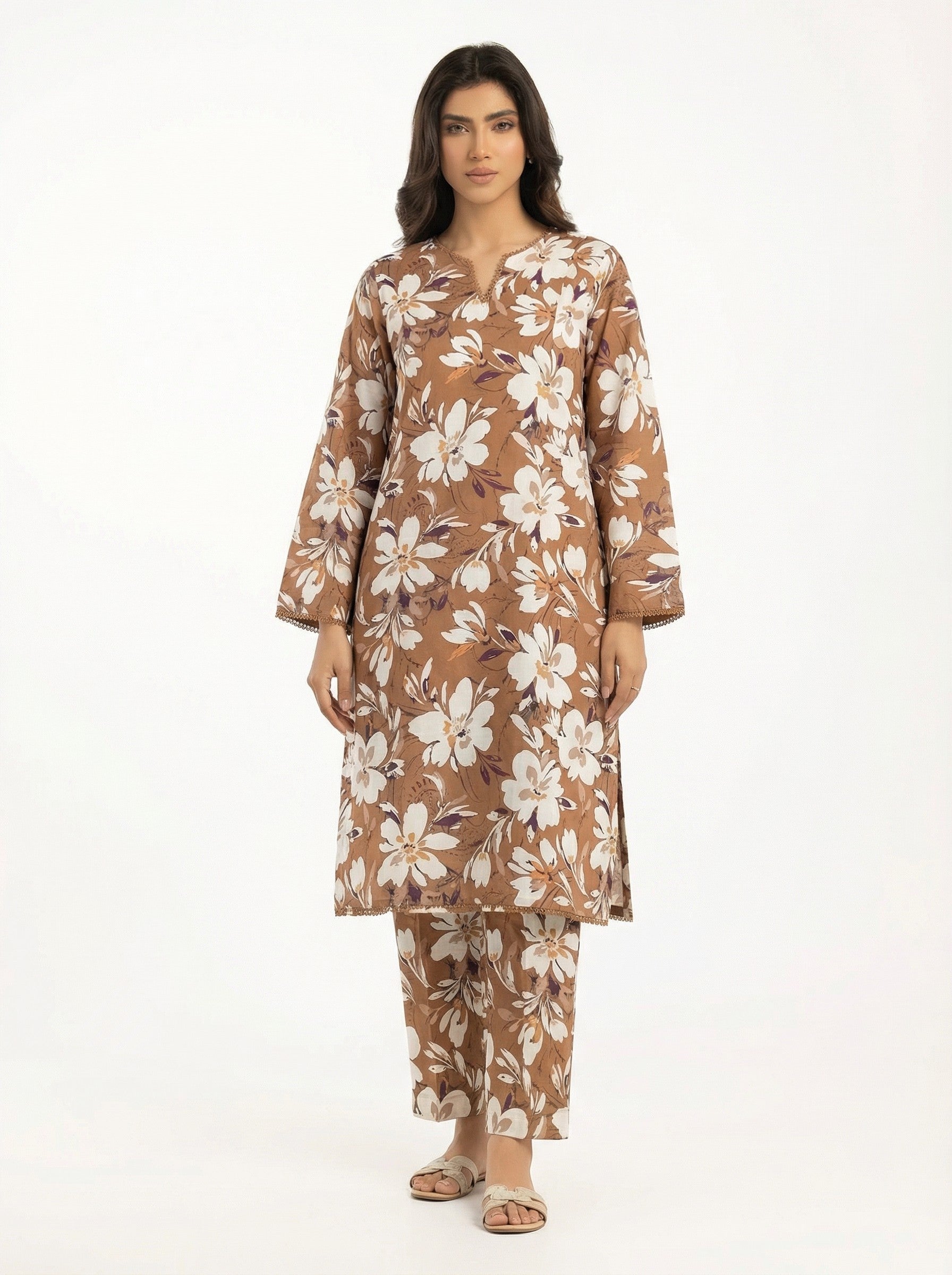 Add earthy elegance to your wardrobe with this brown floral 2 piece stitched suit. Designed with a straight-cut printed kurta and matching trousers, it offers a graceful fit and all-day comfort—perfect for casual wear, workdays, and summer outings.
