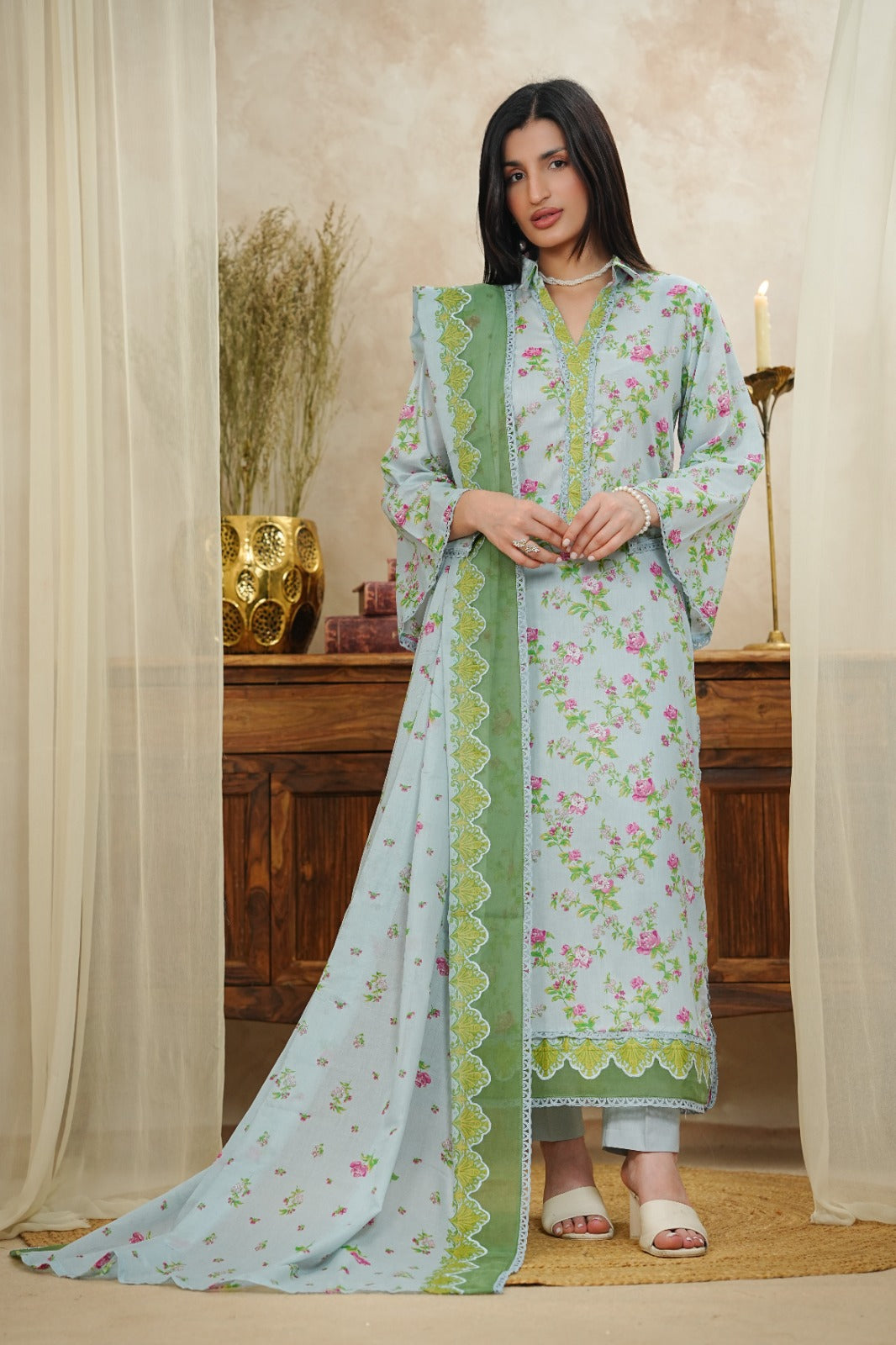 Lawn Printed ShirtLawn Printed Banadora DupattaAirjet Dyed Trouser
