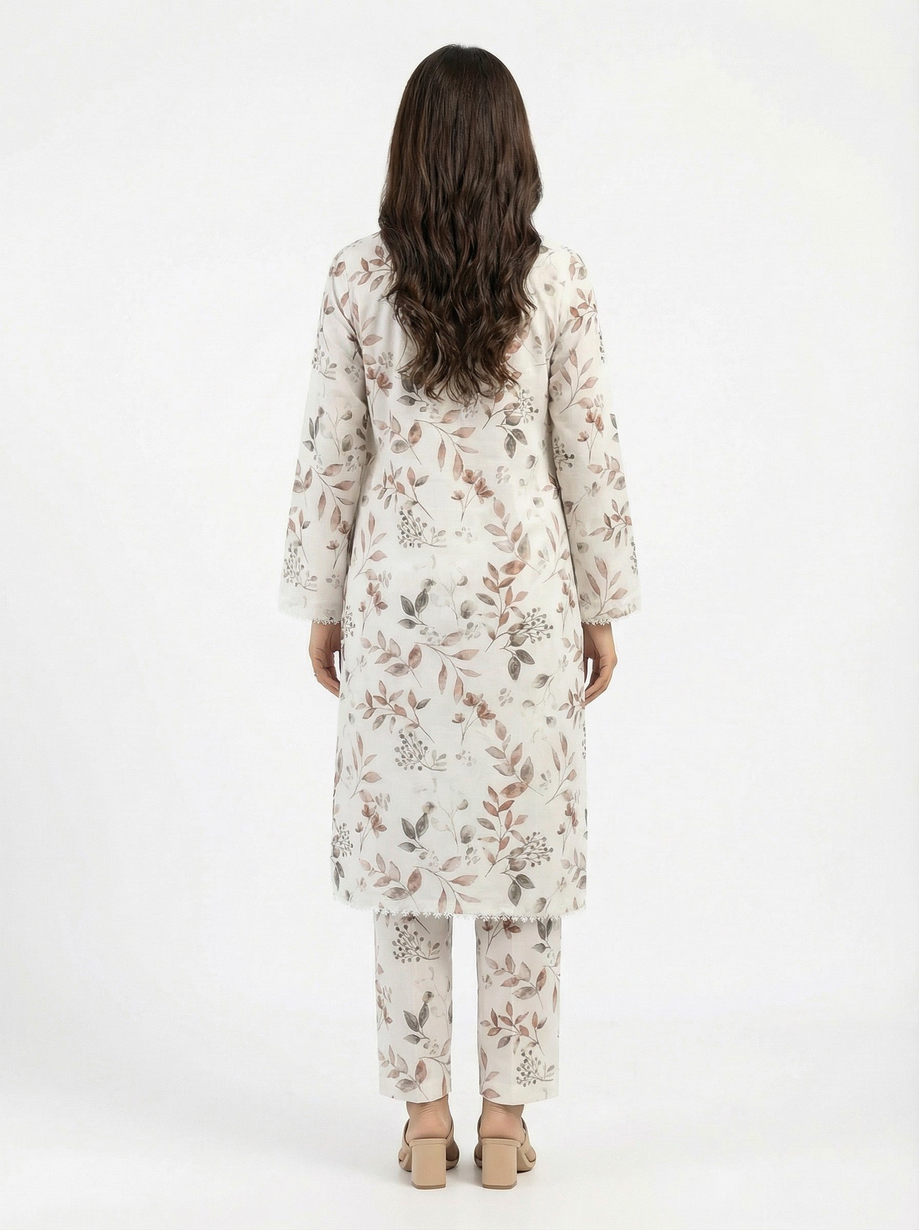 Elevate your everyday style with this off-white leaf print 2 piece stitched suit. Featuring a straight kurta with delicate botanical prints and matching trousers, this ready-to-wear set offers a graceful look with all-day comfort—perfect for casual wear, office looks, and semi-formal outings.